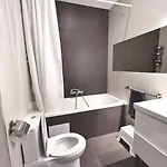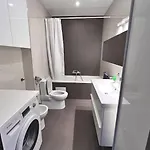 Das Riga Modern Apartment verfügt über ein Badezimmer mit einem Haartrockner und Handtüchern. Außerdem gibt es hier ein Bidet und eine getrennte Toilette.